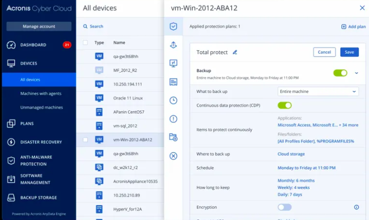 - CDP integrates seamlessly with Acronis’ broader suite of protection solutions, including advanced anti-malware and backup capabilities.