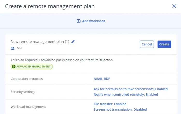 - Navigate to “Management” > “Remote Management Plans” and click “Create Plan.”