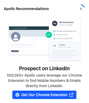 - Engagement Tools: Explore features like sequences, recommendations, and the Apollo Chrome Extension.