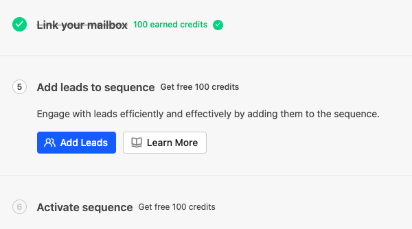 Now that your mailbox is linked, Add leads to your sequence.