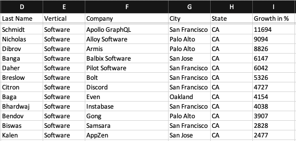 I’m sorting the list by industry, and then starting with companies in California.