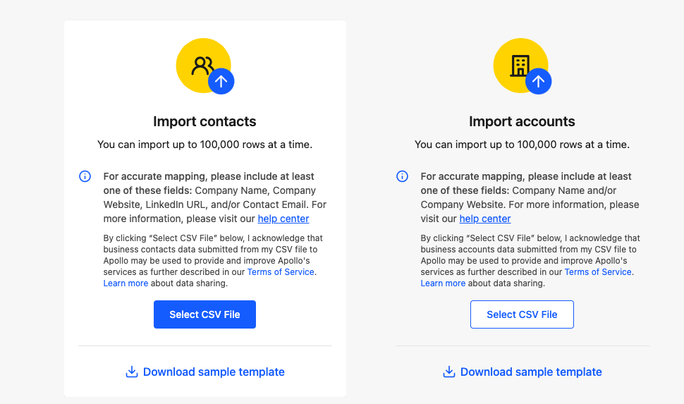 Upload a CSV of Accounts to Apollo