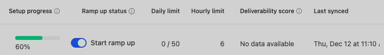 It’s important to note that if you’re already sending a high volume of emails through a particular account, enabling Ramp-Up will throttle that account for the next two weeks to ensure proper warming.