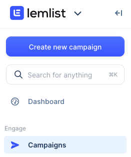 To set up a lemlist sequence, click Campaigns, then Create New campaign