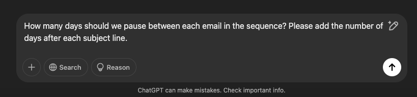 Since we forgot to ask ChatGPT how many days we should delay between emails, let’s ask now: