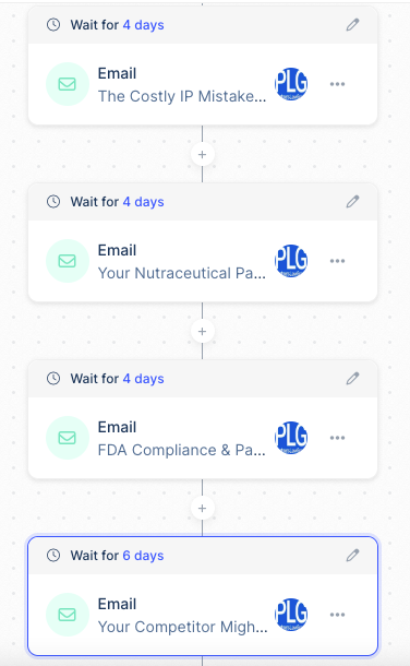 I need the entire email sequence. Share one tidbit of information regarding “gotchas” in nutraceutical IP and patent law that could be avoided through hiring the right attorney. Label each email in the sequence Email #1, Email #2, etc.
