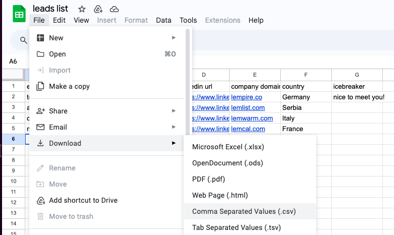 We’re going to import via CSV, but there are other options as well, including searching the lemlist people database.
