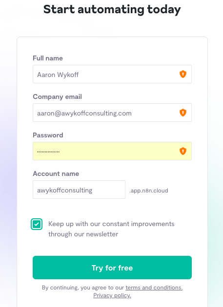 To get started, sign up for a free account. https://app.n8n.cloud/register